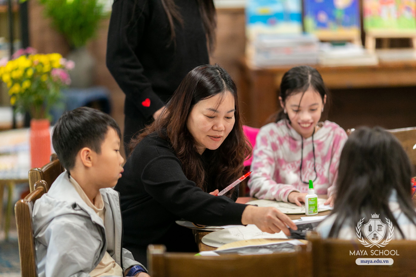Các dự án như Sáng tác tranh mừng sinh nhật Maya 6 tuổi và Làm đèn lồng lục giác đều yêu cầu tinh thần hợp tác và phối hợp theo nhóm. Trong quá trình này, các con liên tục chia sẻ ý tưởng và hỗ trợ lẫn nhau để tạo nên những tác phẩm đẹp, hài hoà và phù hợp với tinh thần của dự án. Qua đó, các con không chỉ rèn luyện kỹ năng làm việc nhóm mà còn học cách giải quyết vấn đề cùng nhau.