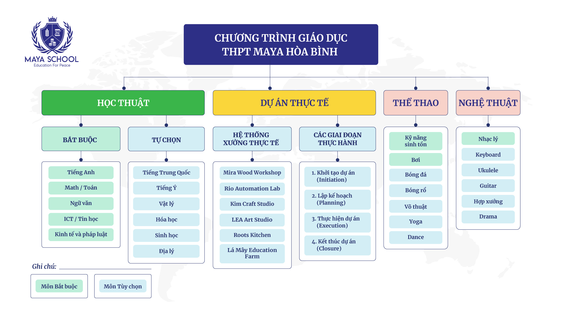 Chương trình giáo dục THPT Maya Hòa Bình đáp ứng chuẩn đầu ra của Bộ GĐ&ĐT Việt Nam và Common Core Hoa Kỳ.